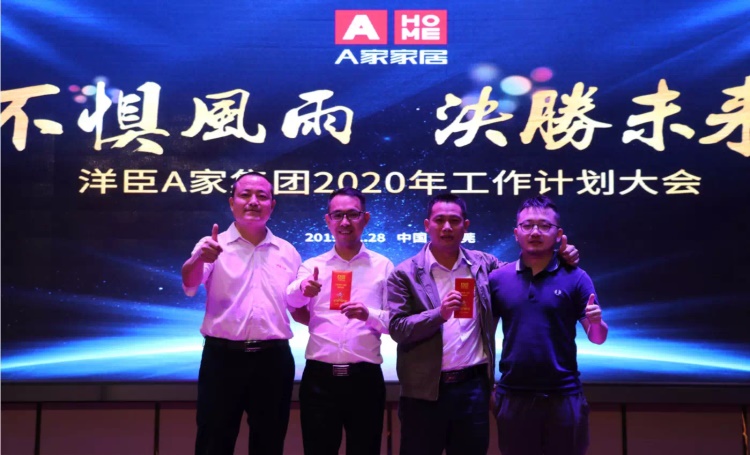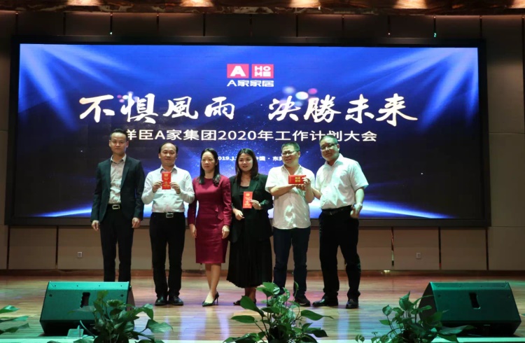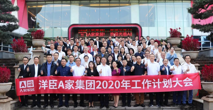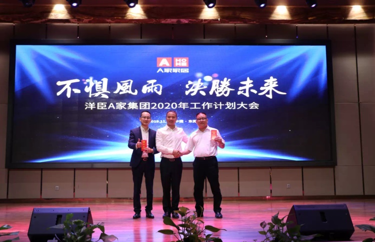 2019年11月28日, A家集团总部国际会议中心,“不惧风雨,决胜未来”洋臣A家集团2020计划会议隆重开启。集团董事长吴卫臣先生与营销中心、研发中心、财务中心、制造中心、采购中心、行政中心、国际事业部等部门高管以及各分公司负责人,齐聚A家总部,为谱写A家家居新篇章出谋划策。