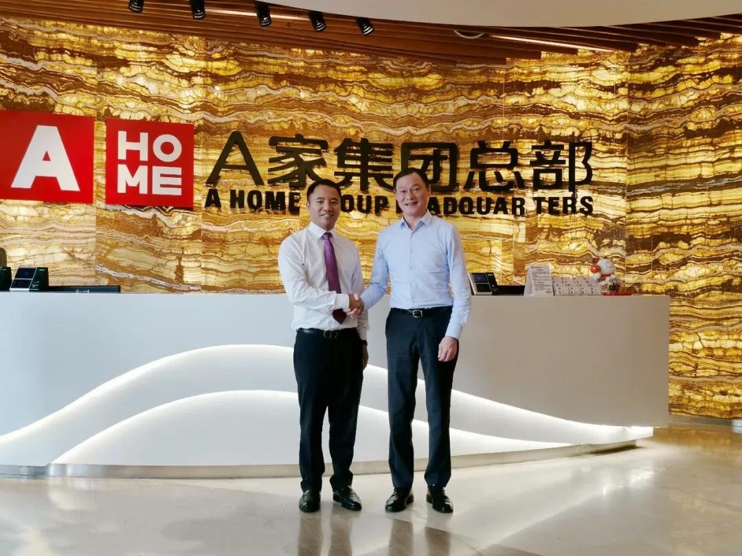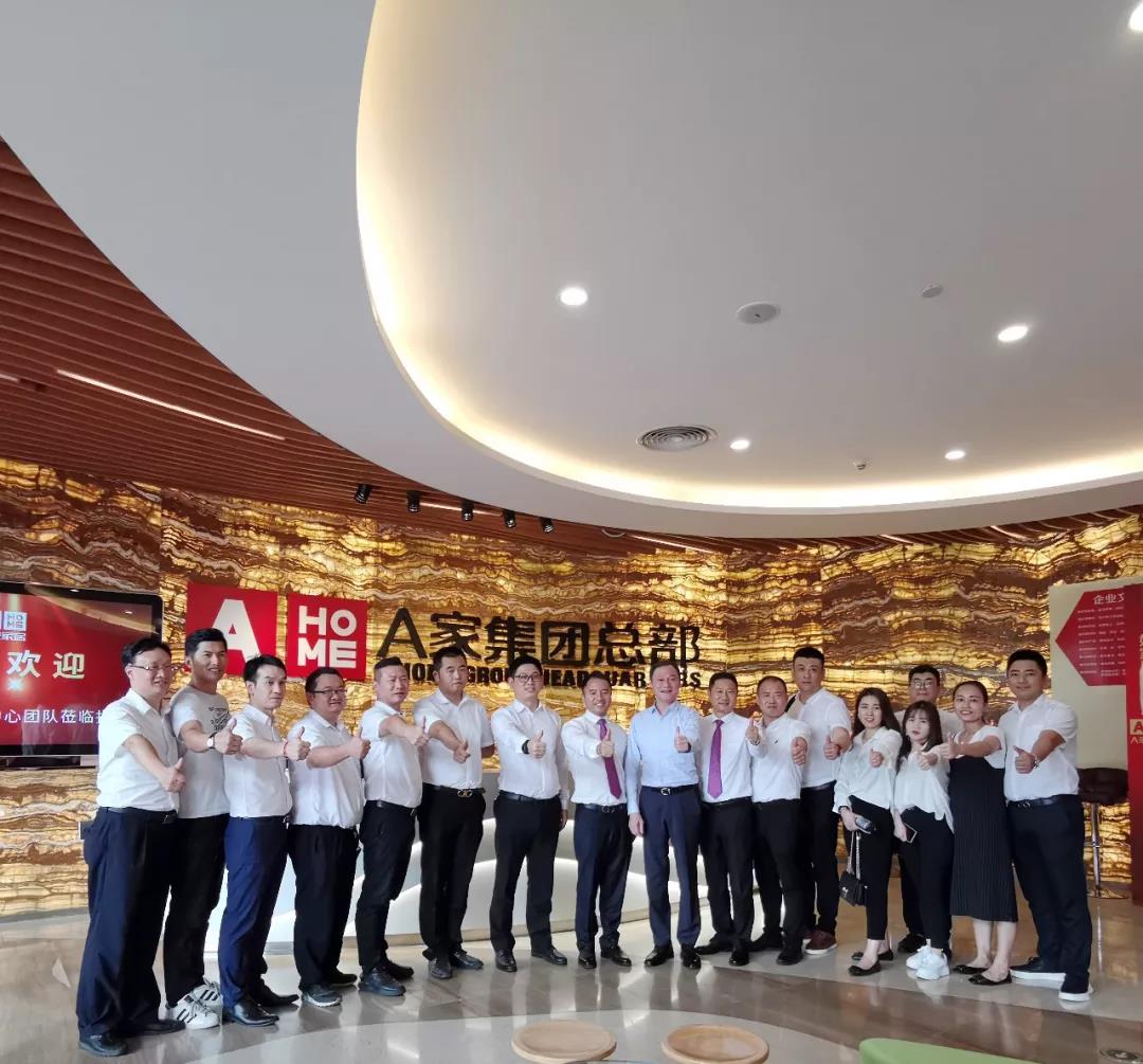 2019年7月8日,欧亚达商业控股集团副总裁向开文一行前来参观A家家居总部大厦,在A家家居董事长吴卫臣和A家高层领导的陪同下,参观了A家家居国际总部大厦,并对A家家居的总部展厅和产品系列进行了高度赞扬。