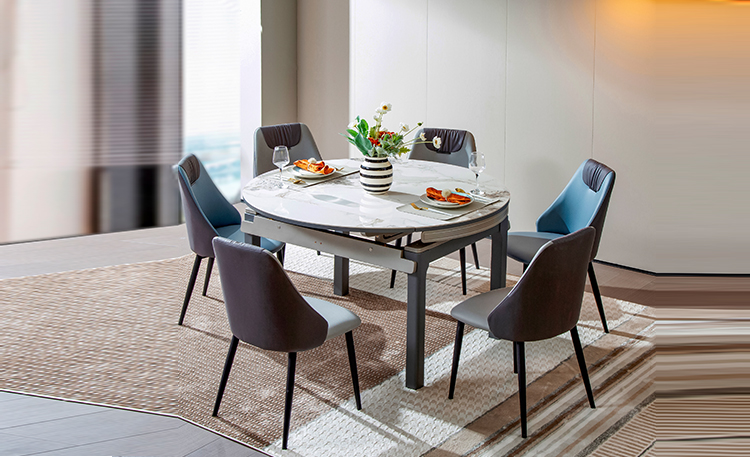 餐桌是现在最受欢迎的也是最实用多变的拉合设计,可圆可方灵活变形,既满足了日常家庭生活的需求,又满足了亲友聚餐、阖家团聚的需要,美观实用。简约的造型,绝不添加一丝丝多余元素。是对现代都市生活态度最好的诠释;