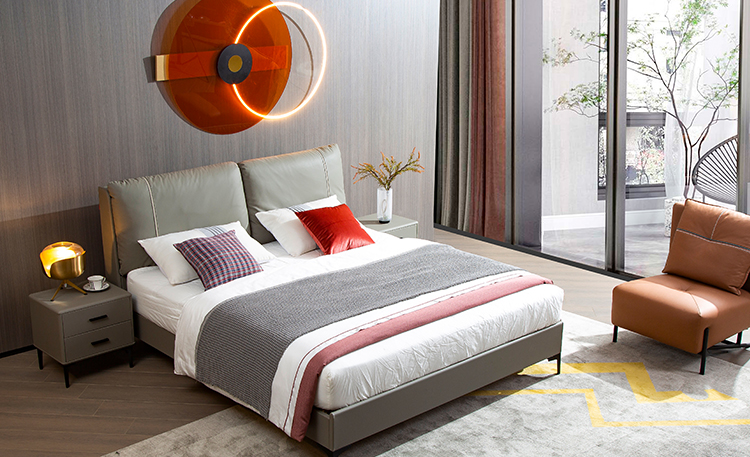 整张床采用暮岩灰作为整体色调,取自落日霞光挥洒在山顶岩石上的颜色,呈现出一种暖调的灰色,宁静致远,富有韵味;在样式设计上,设计师遵循设计原则中最经典的