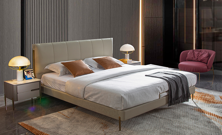 这款床的设计灵感来自于意大利极简理念,没有繁杂的线条,没有鲜明的色彩,大道至简。用最经典的颜色,给人安静温暖的空间氛围 ;