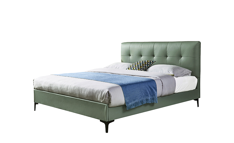 这款床的颜色使用海雾蓝,颜色饱和度低,给人一种清新淡雅的感觉,比起高饱和度、高明度的颜色,这种色系对我们的眼睛来说更加的舒服,在卧室当中使用,能够有效加速进入睡眠状态;