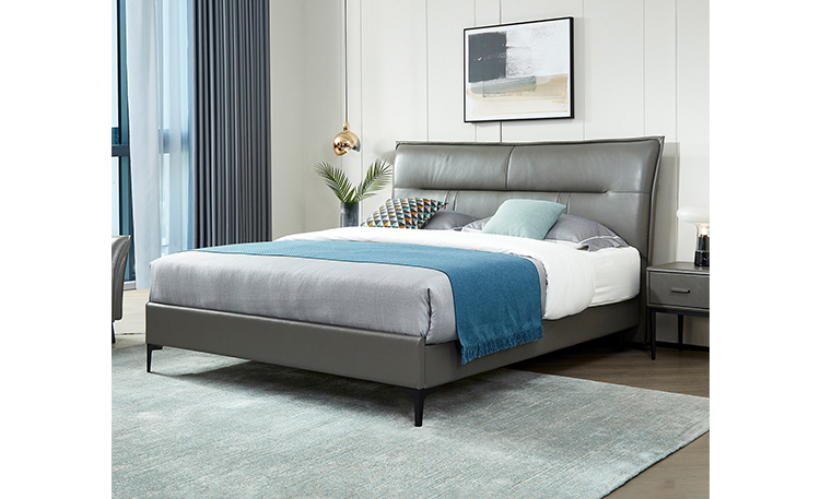 头层黄牛皮+俄罗斯落叶松全实木框架,可终身使用;齐边设计,非常节约空间,床尾高出床身的限位设计防床垫滑动。