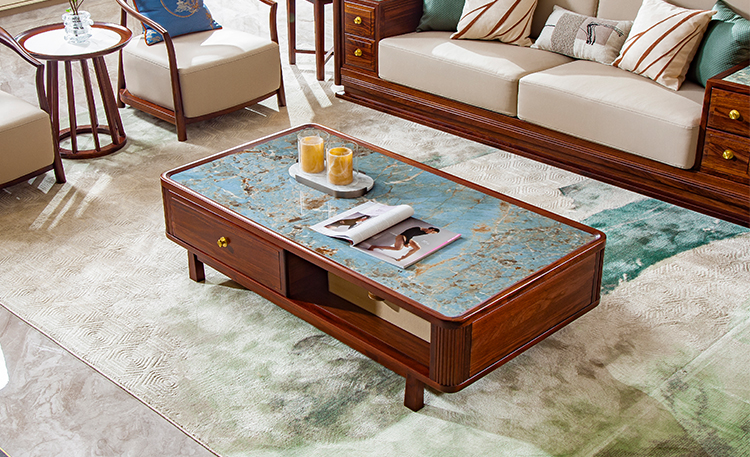 新中式 T801-150S茶几+T801-200地柜 乌金木
