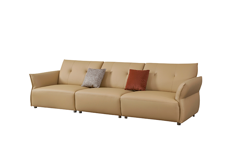 外斜角扶手和靠背更好的适应当今的使用需求,满足人忙碌了一天回家后,喜欢躺在沙发上的行为;蝴蝶展翅状扶手设计,展现出优雅的美感,简化了以往复杂的工艺
