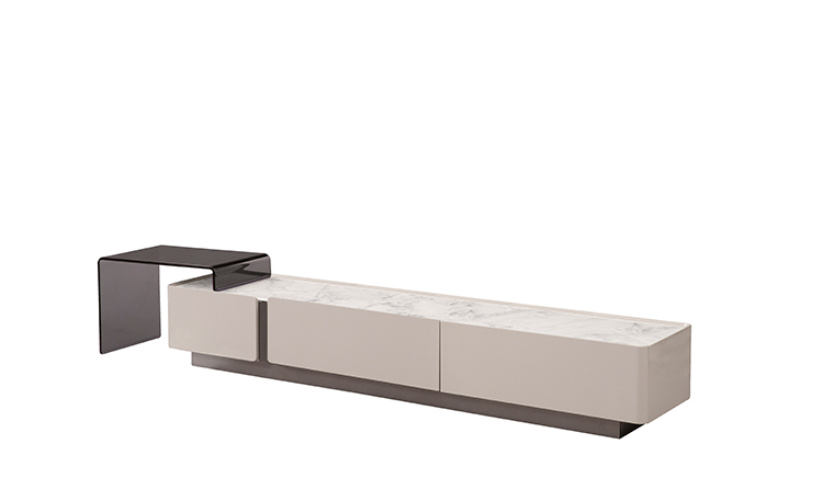 2、时尚伸缩设计,黑玻热弯伸缩边几,让客厅瞬间出彩,自行调整