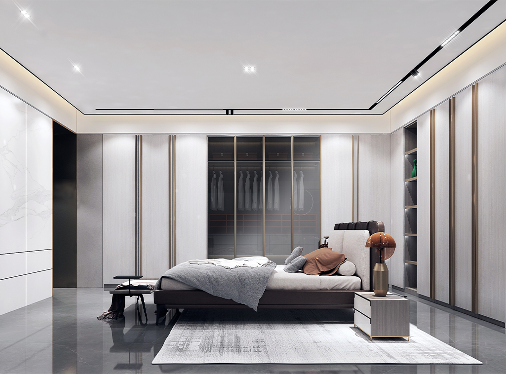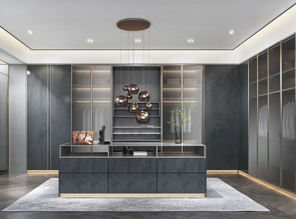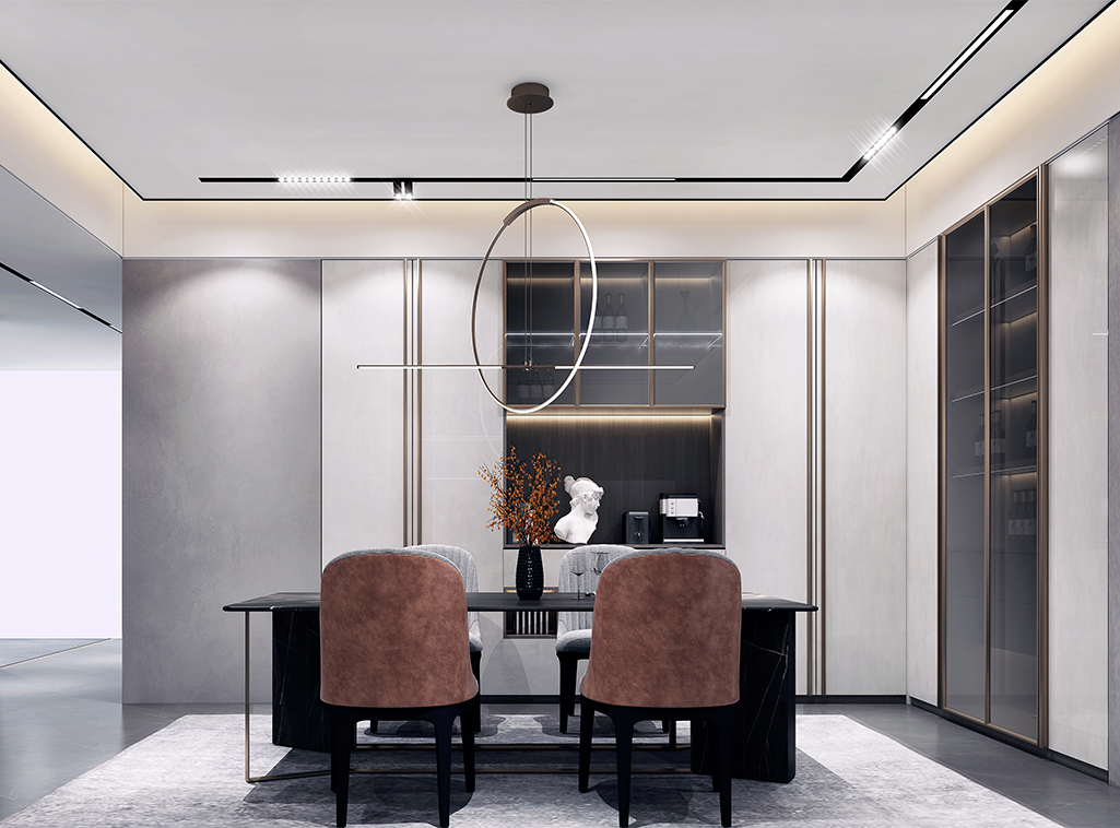 人们对石材的喜爱,展现的是对文化的认同,对“人与自然共生”的归属。家是避风港,石材和灰调的综合空间呈现,仿佛给避风港加固,成为居住者坚毅的堡垒。设计灵感来源于大自然的石材元素,采用独有的自然纹理和色泽,结合UV板材的质感和光泽,搭配黄铜色经典轻奢金属元素,展现出时尚和高贵的艺术气息。