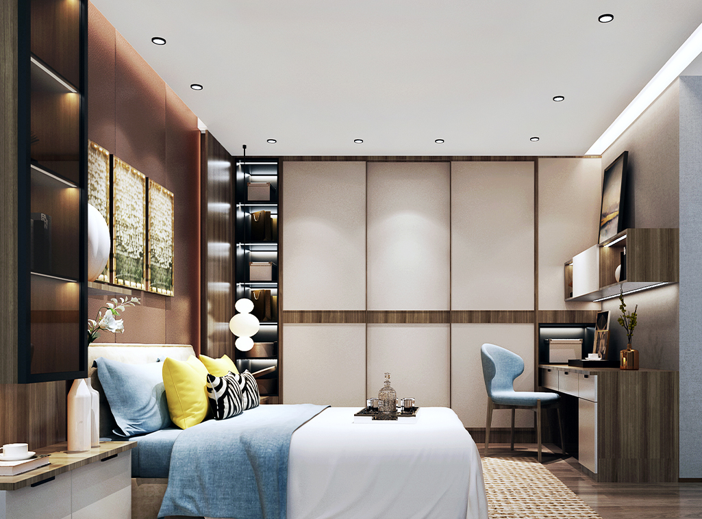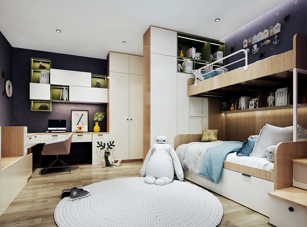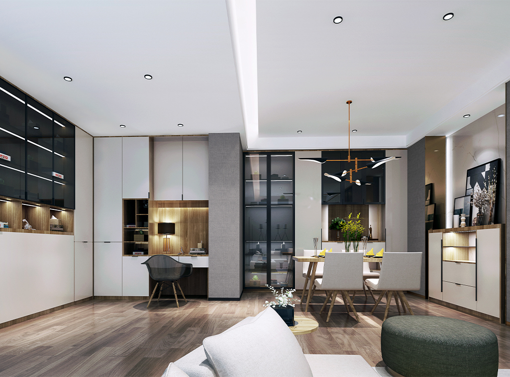 秉承“时尚、简约、朴实”的设计理念,运用富有沉稳自然气质的胡桃木饰面,搭配纯白细腻的PET门板,营造一个宁静的空间,一抹地中海蓝色给人带来强烈的视觉感受,在空间展现出经典纯净的现代北欧风格。