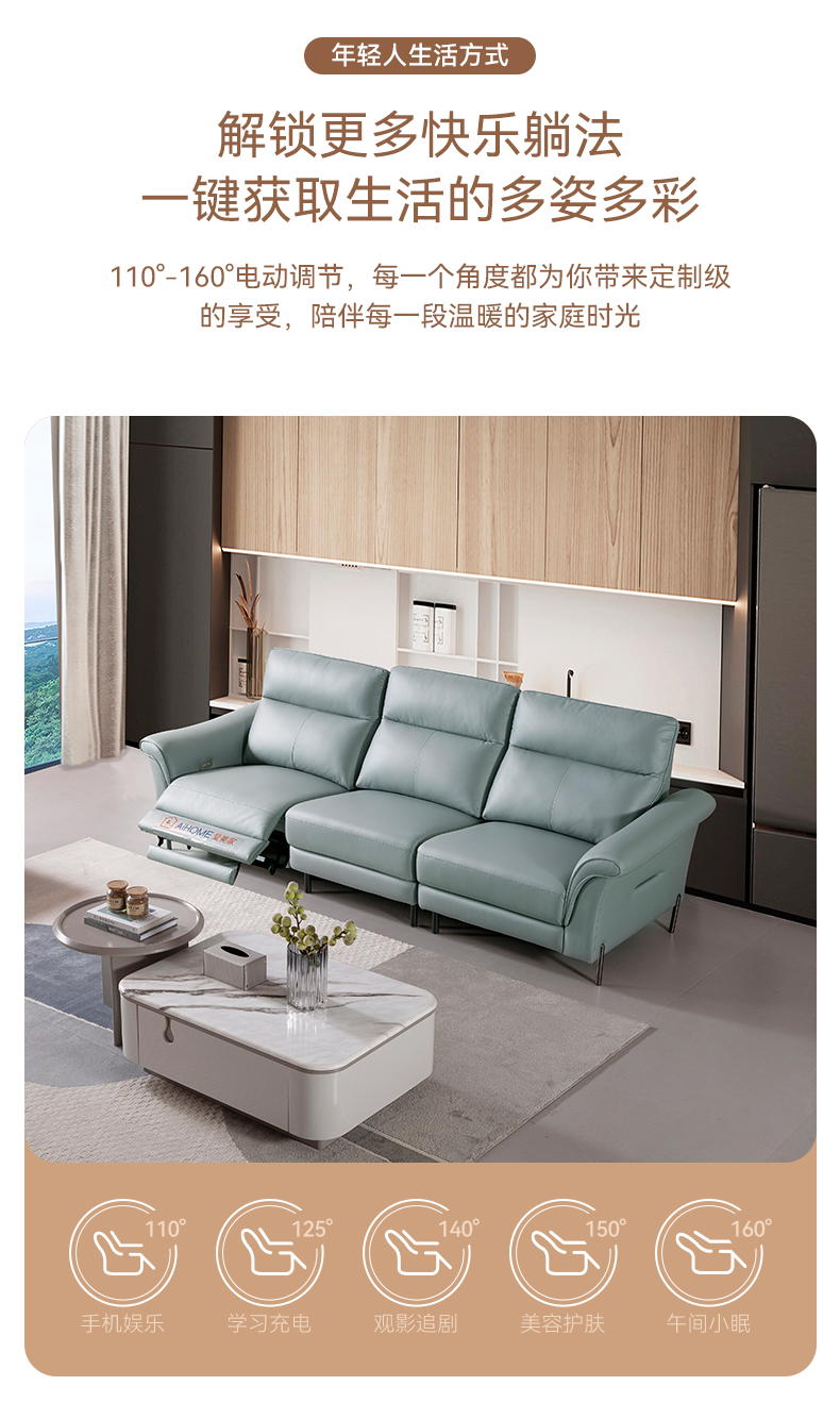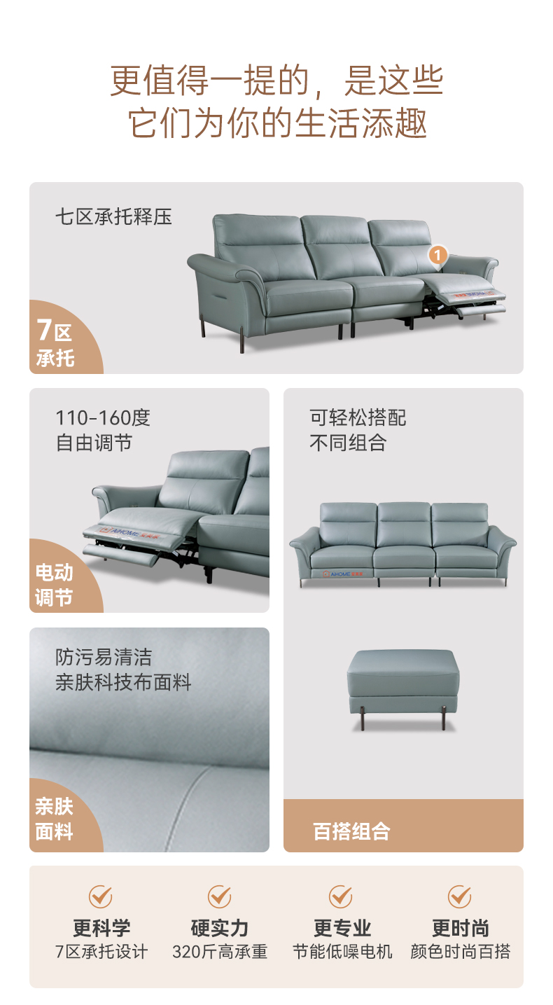 现代休闲 Ai8006A 直排+踏 科技布电动功能沙发