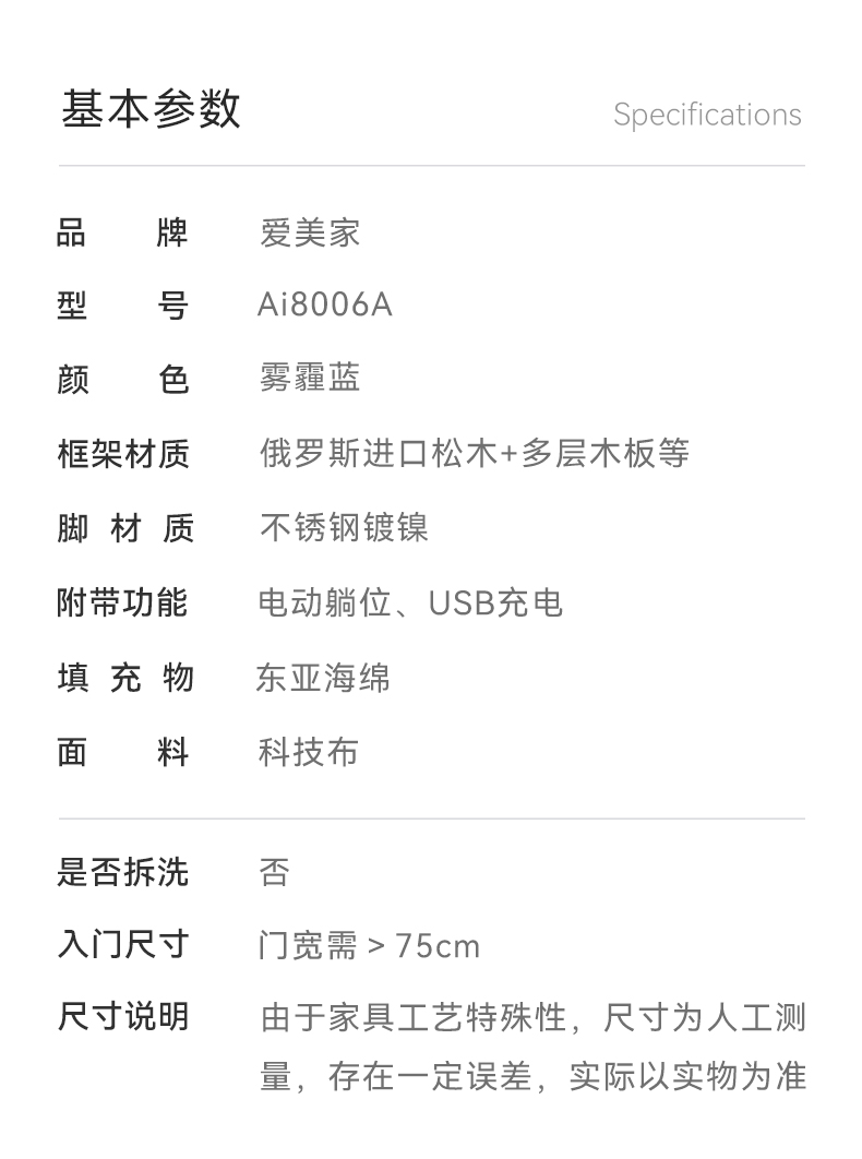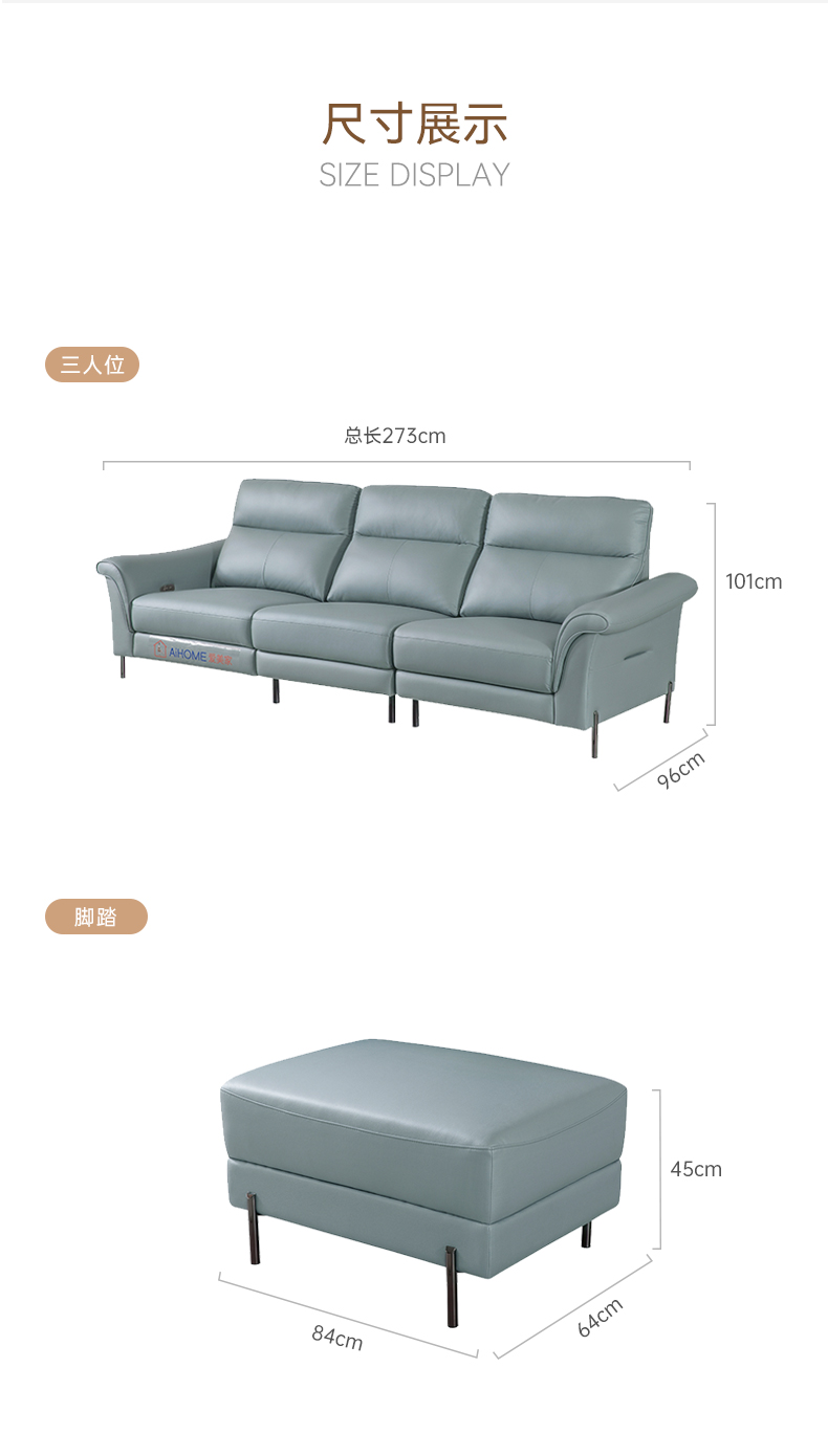 尺寸:Ai8006A(1LD+1+1R)左电动直排沙发2730*960*1010