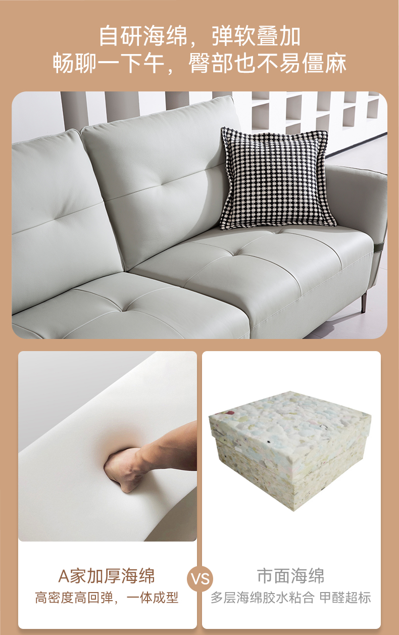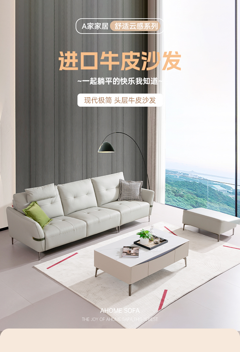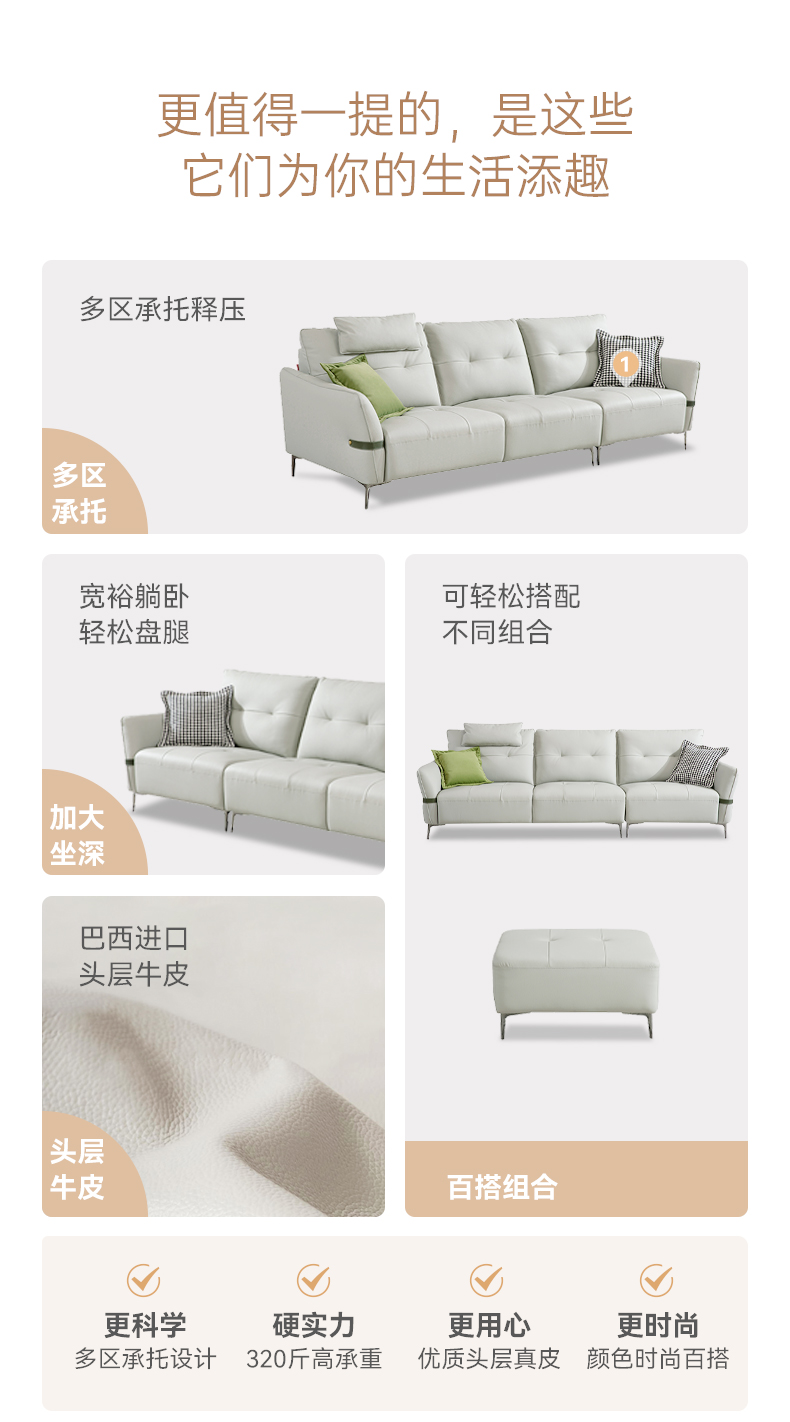 现在休闲 Ai8007 直排+踏 头层牛皮沙发