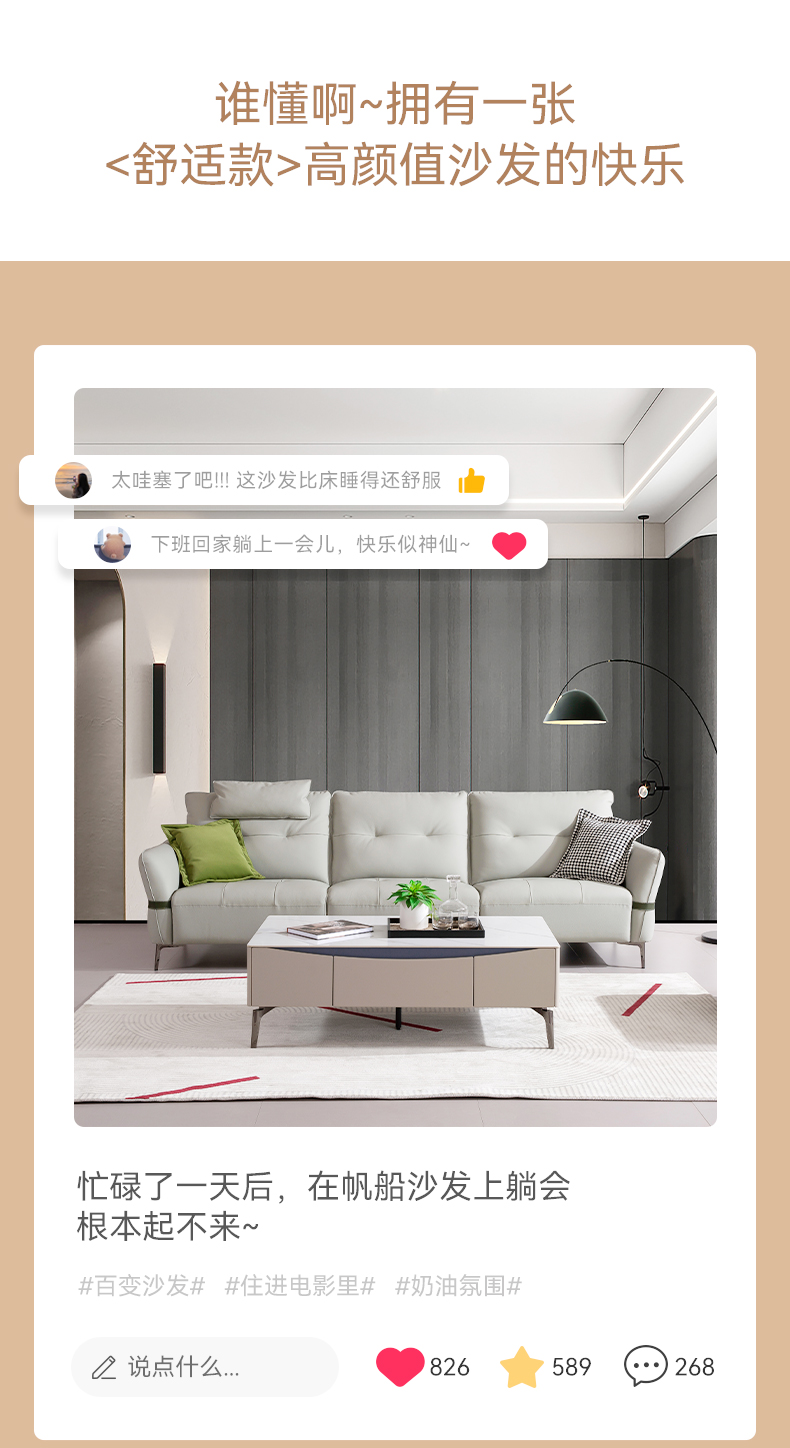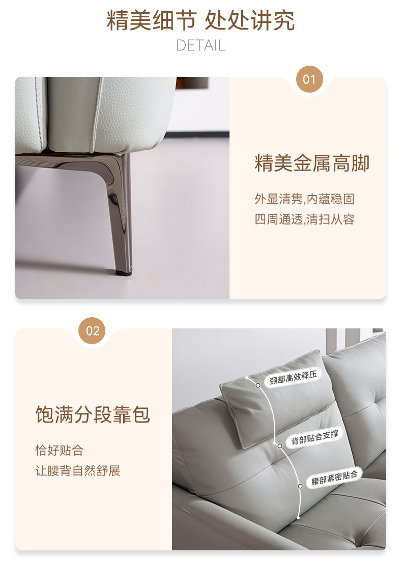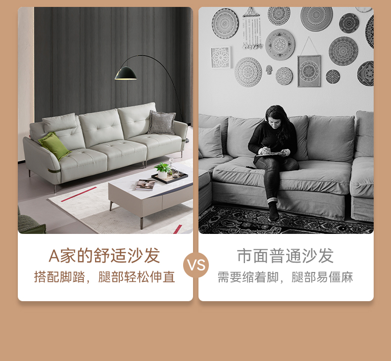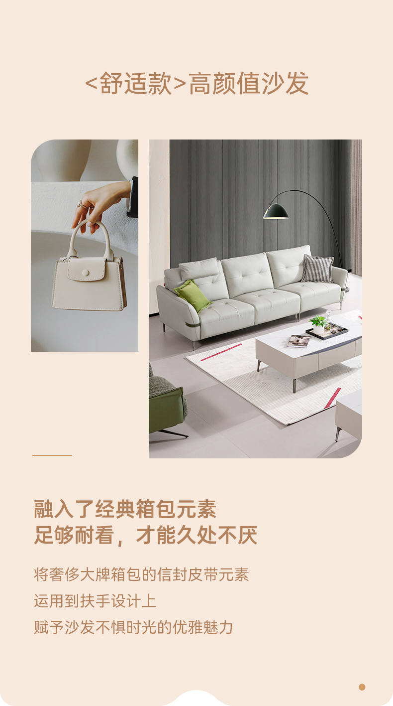 现在休闲 Ai8007 直排+踏 头层牛皮沙发