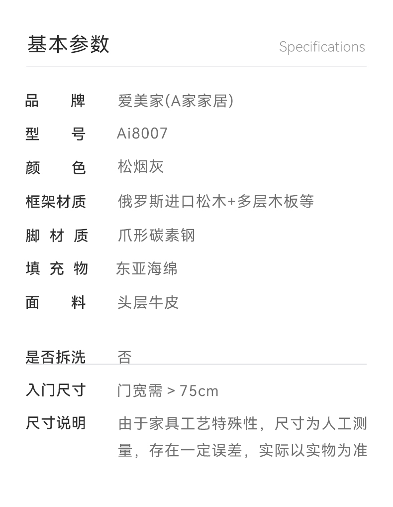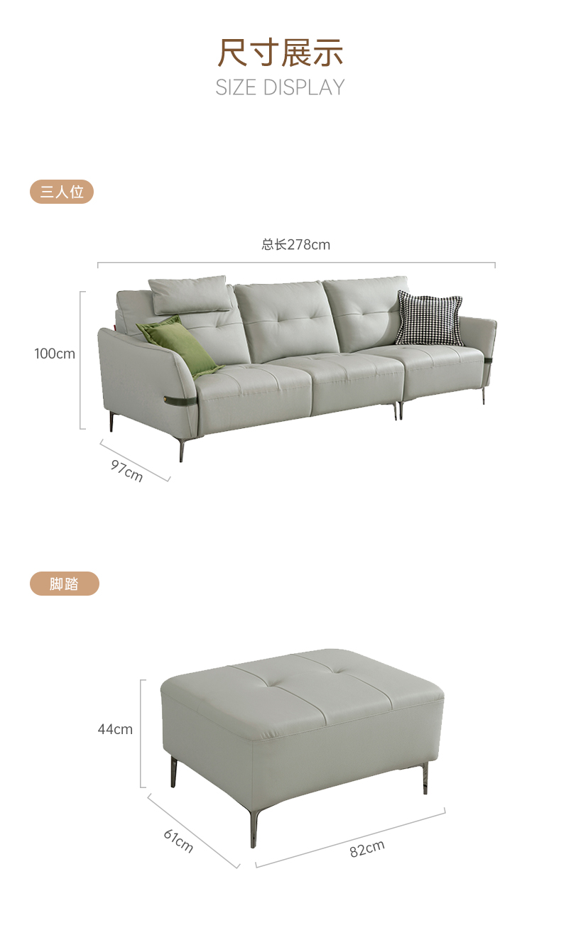 尺寸:Ai8007(1R+2L)直排沙发2780*970*1000