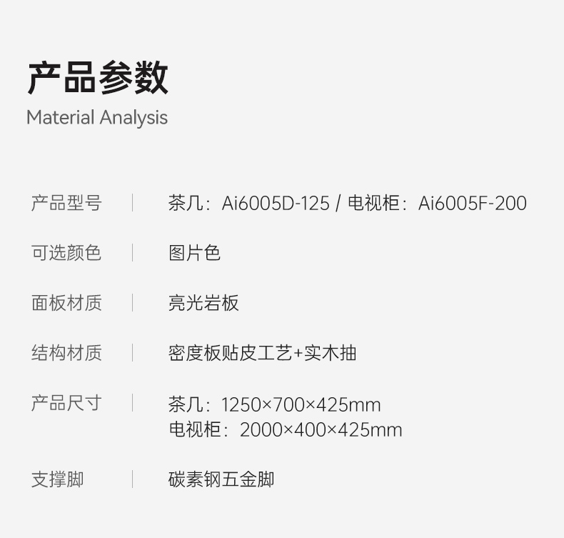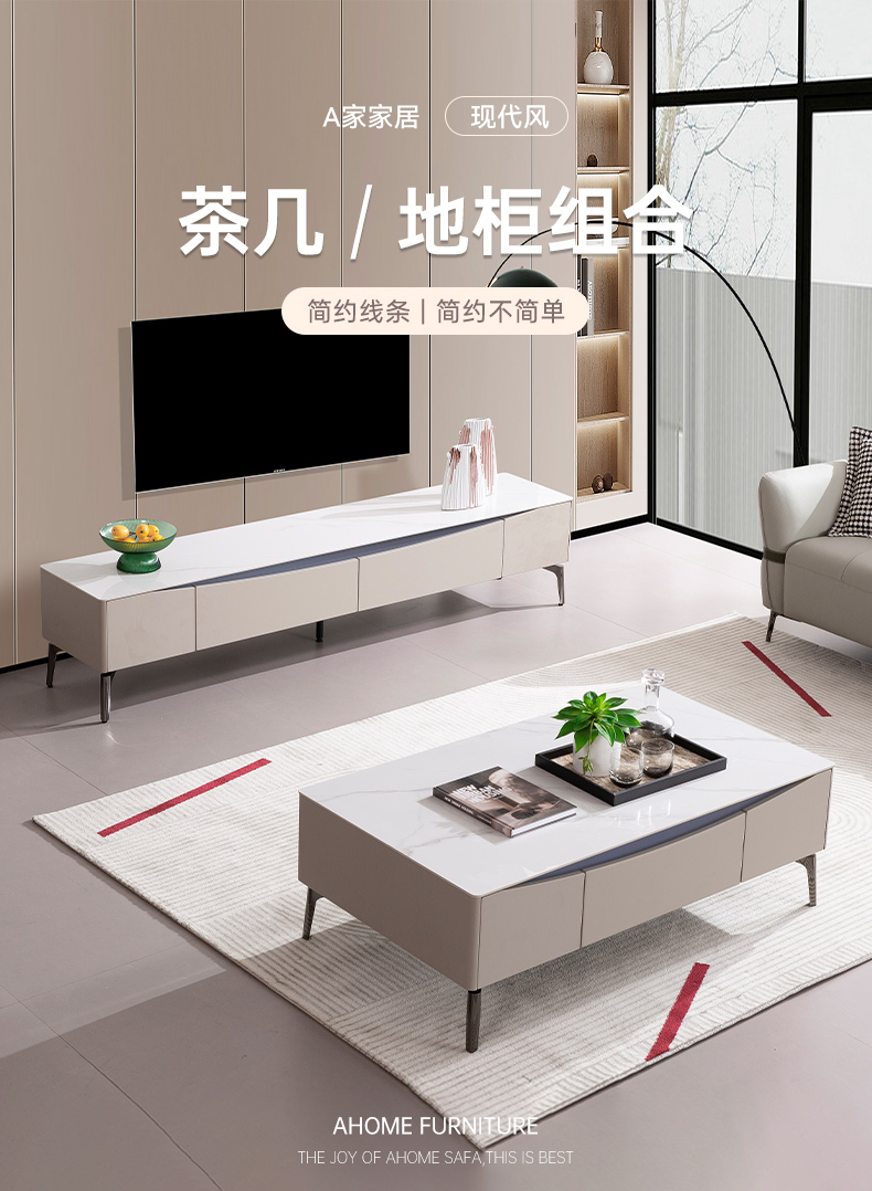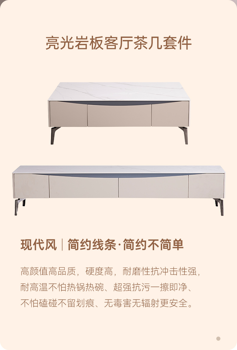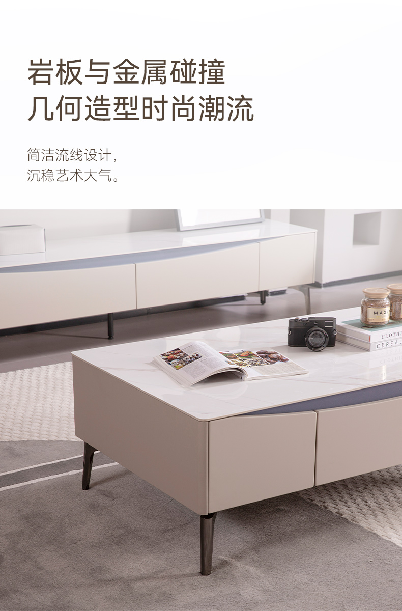 现代简约 Ai6005D-125茶几+Ai6005F-200地柜 岩板