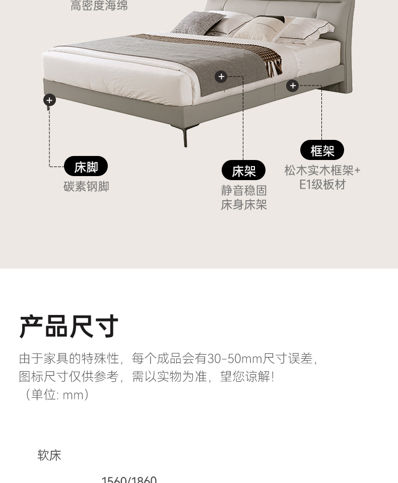 齐边床 非排骨架 ,适用于主卧/次卧