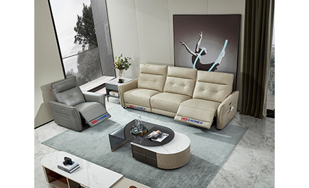 现代休闲 电动功能沙发 AH9070 奶油白/海鸥灰 头层牛皮