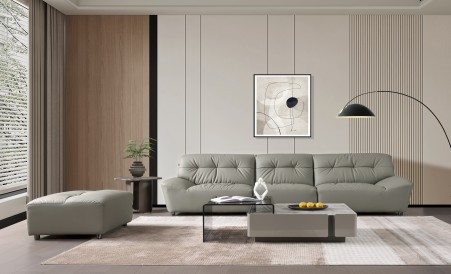 现代极简 U517 直排+脚踏 头层牛皮 组合沙发