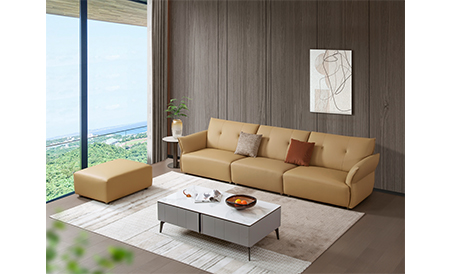 现代极简 U517 直排+脚踏 头层牛皮 组合沙发